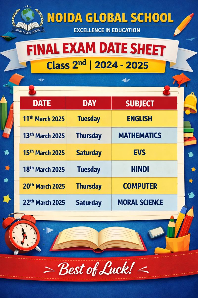 Final Exam Date Sheet (Class 2nd) 2024-2025